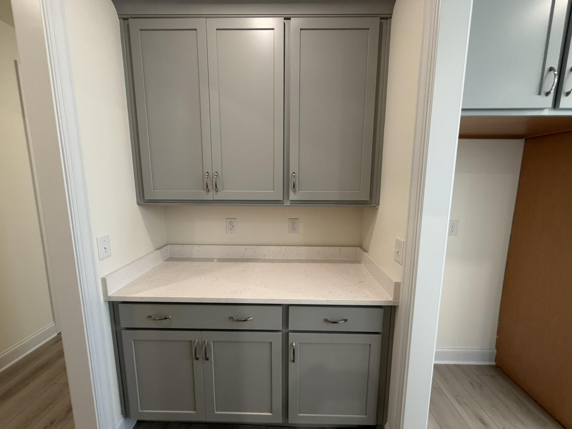 - The kitchen features an island and pantry