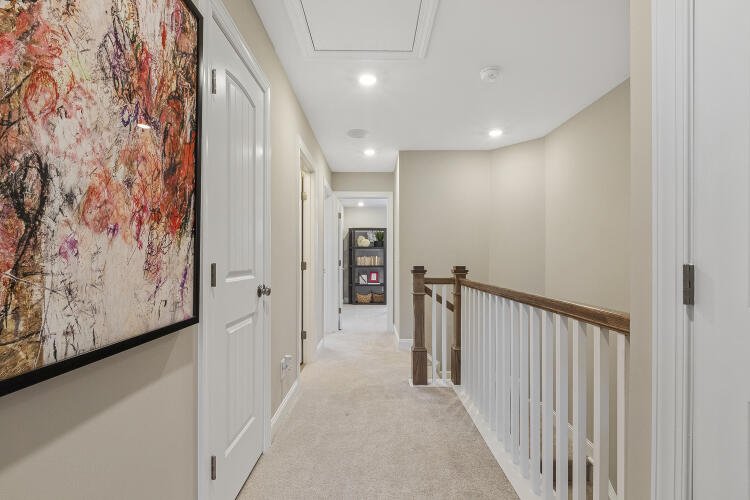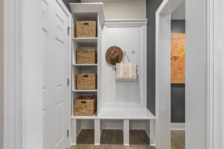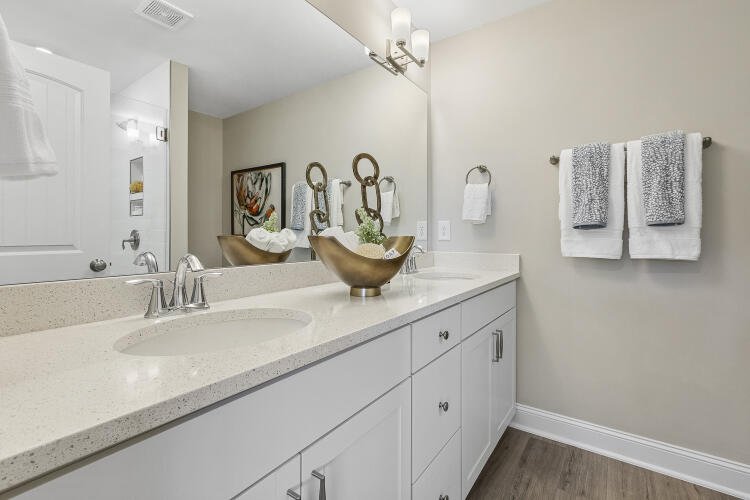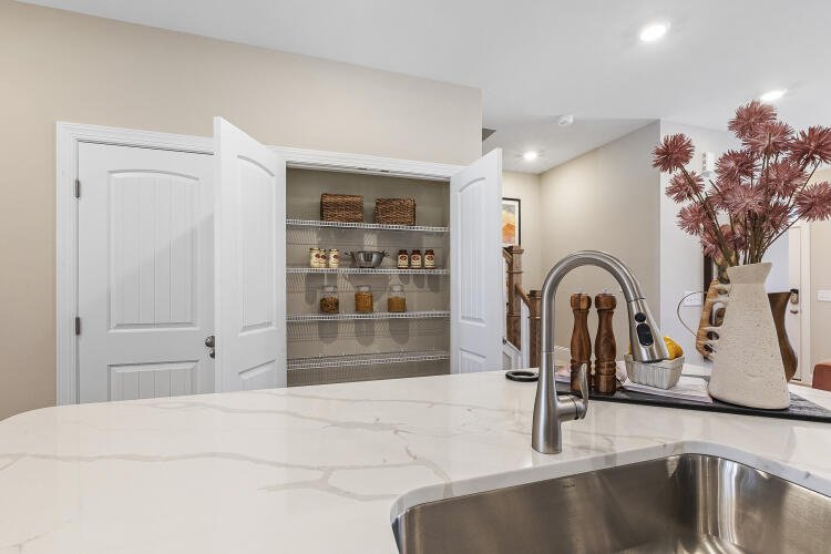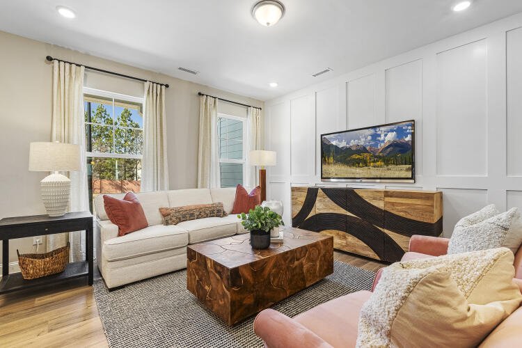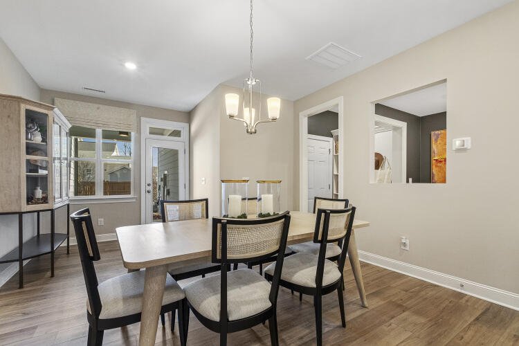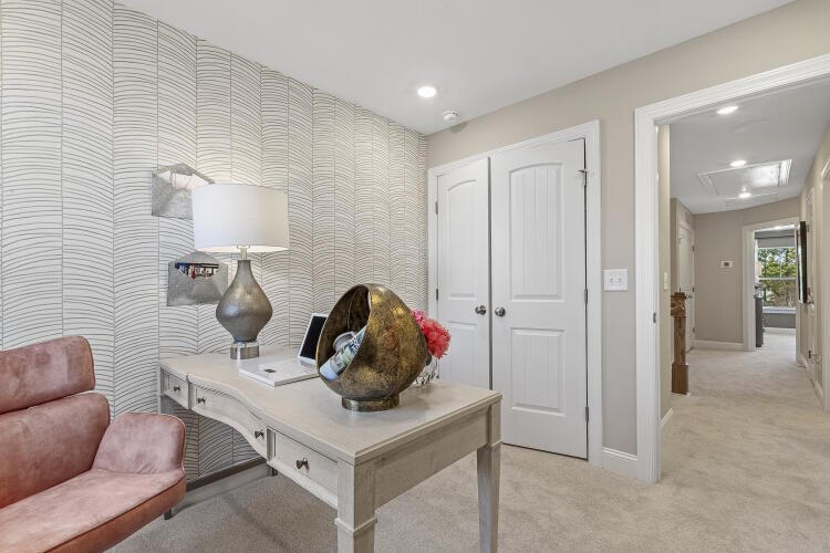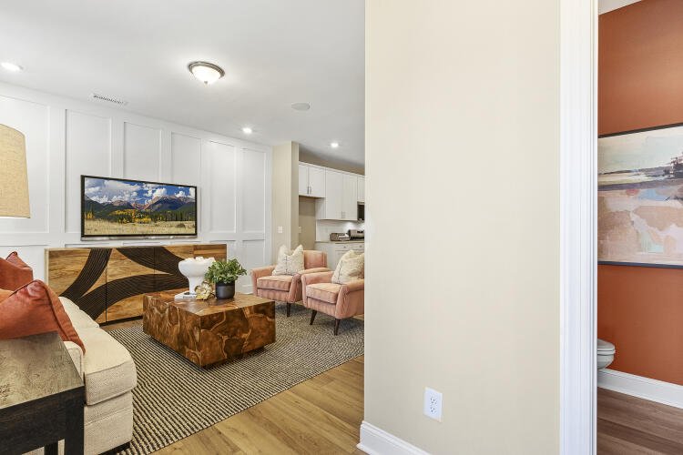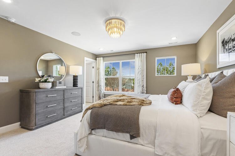 The Bluffton is a two-story, three-bedroom, two-and-a-half-bath townhome with a one-car, rear-load garage, spacious and open family room, kitchen with island and pantry, separate dining area, cozy nook which is perfect for a first-floor office area, and covered rear porch. All three bedrooms and laundry are on the second floor and the primary suite features a shower and dual walk-in closets.